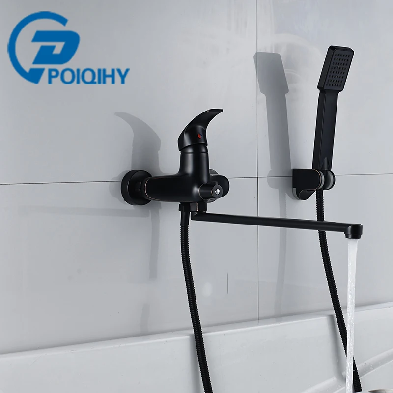 Us 763 40 Offpoiqihy Badewanne Wasserhahn Langem Auslauf Wasserhahn Handbrause Badezimmer Wasserhahn Wand Montiert Mischbatterie Mit Bracket