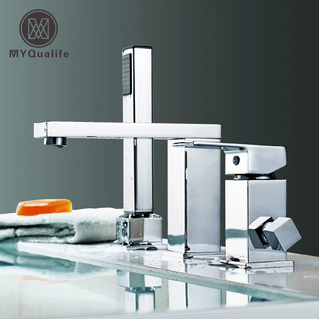 Danach ist das Bild verbunden Wasserfall Armatur Schwall Auslauf Eckiger Griff Badewanne Das können Du Mach es Probe