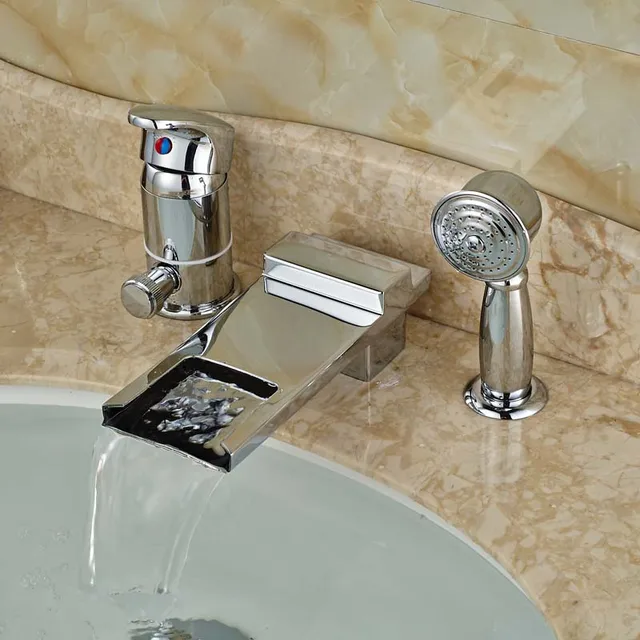 Us 854 44 Offeinzigen Handgriff Wasserfall Langem Auslauf Badewanne Mischbatterie Deck Montieren 3 Stücke Mit Handbrause In Einzigen Handgriff