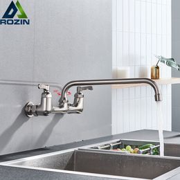 Wandmontage Langer Auslauf Spüle Wasserhahn Dual Griff Gebürstetem Nickel Bad Küchenarmaturen Drehen Lange Nase Heiß Kalt Wasserhähne