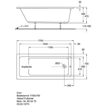 Keramag Einbauwanne Icon 650475000 170 X 75 Cm Ab U überlauf Am Fußende Weiss