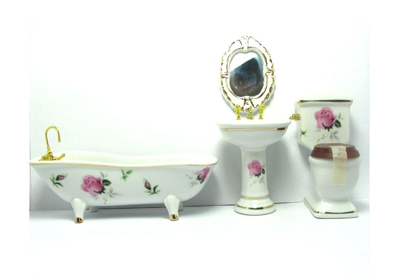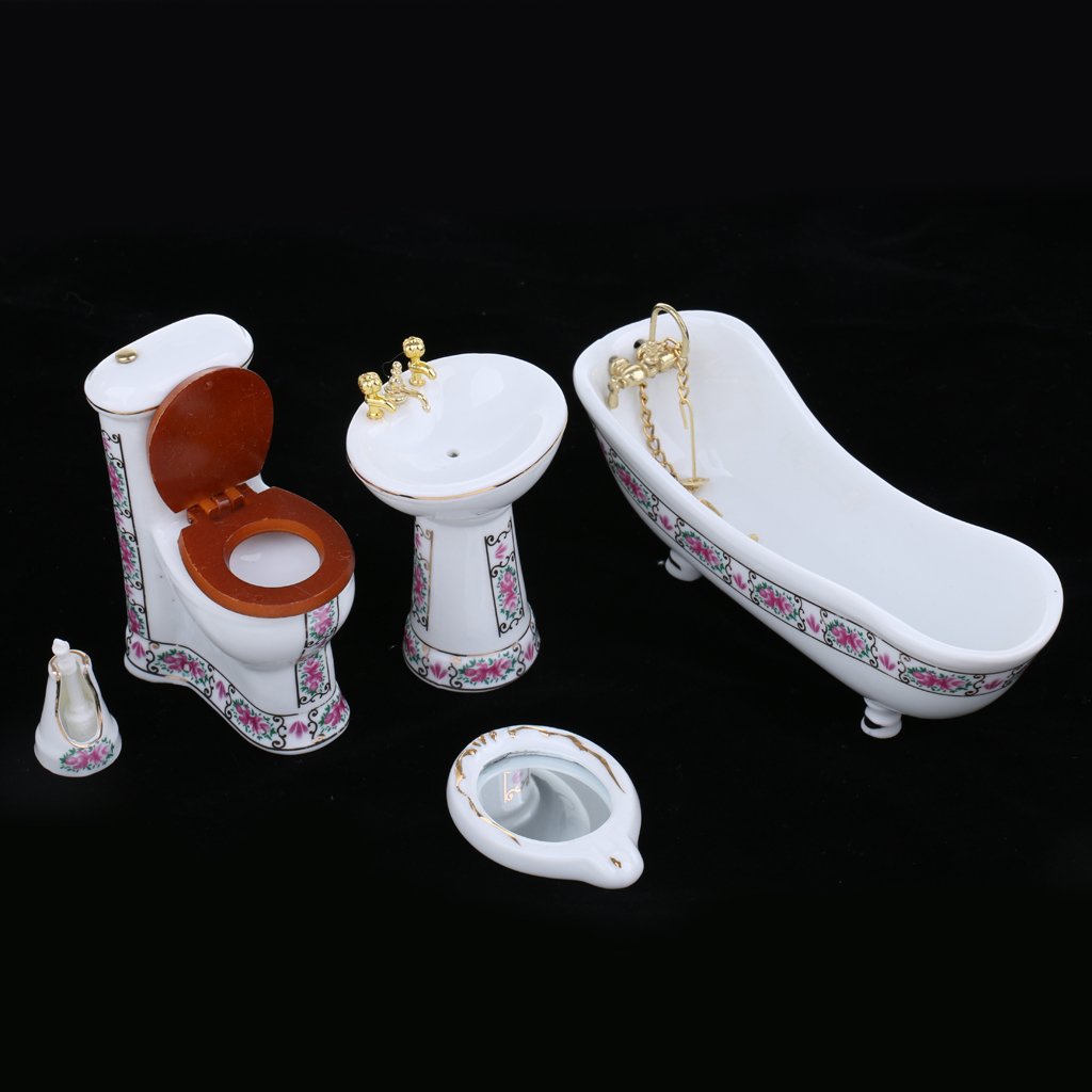 Großhandel 112 Skala Puppenhaus Möbel Miniatur 4 Stücke Bad Set Wasser Schrank Porzellan Kits Becken Wc Badewanne Spiegel Von Luckyclover888 1289