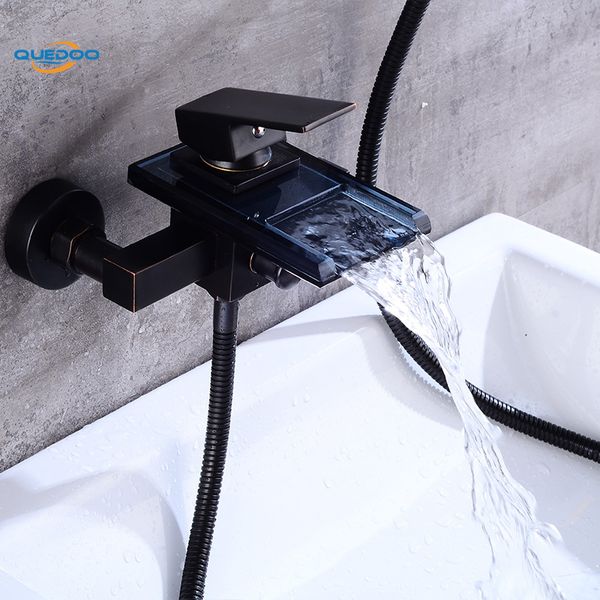 Jieni Dusche Armaturen Platz Wand Montiert Wasserfall Glas Auslauf Badezimmer Bad Handheld Dusche Set Mischbatterie Badewanne Wasserhahn