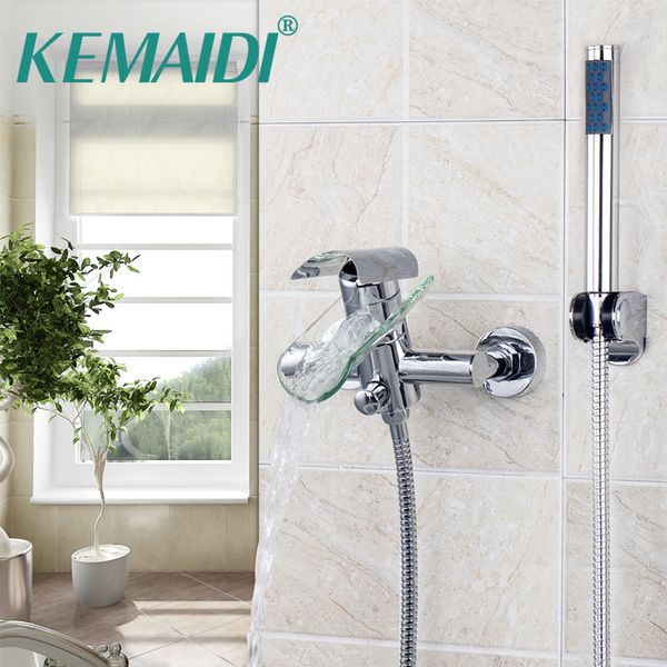 Großhandel Kemaidi Wasserfall Glas Auslauf Badewanne Becken Mischbatterie Badewanne Wasserhahn Zeitgenössische Schöne Keramik Platte Spool Wand