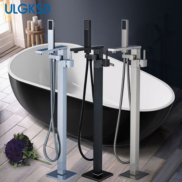 Großhandel Ulgksd Badezimmer Badewanne Wasserhahn Massivem Messing Bodenmontierte Wasserhahn W Handbrause Badewanne Füller Badewanne Kalt Und
