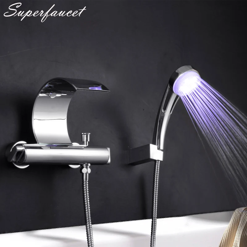 Led Licht Wasserfall Wasserhahn Dusche Set Auslauf Badewanne Dusche Wasserhahn Griff Mixer Mit Hand Spray Für Badewanne Led Wasserhahn Buy Duschkopf