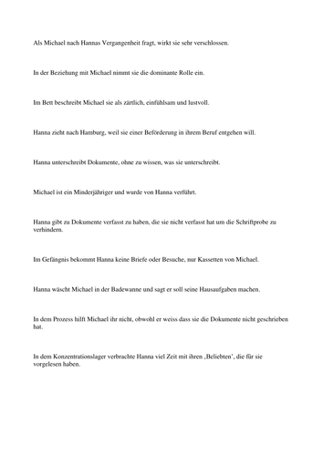 Der Vorleser Filmsequenzen Mit Zeitangabe Inhaltsangabe